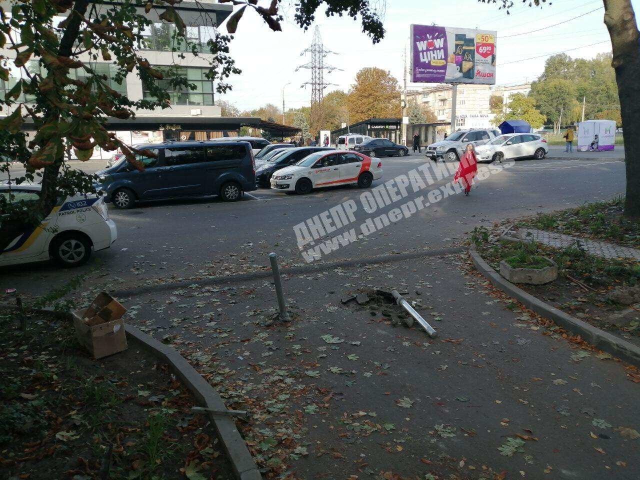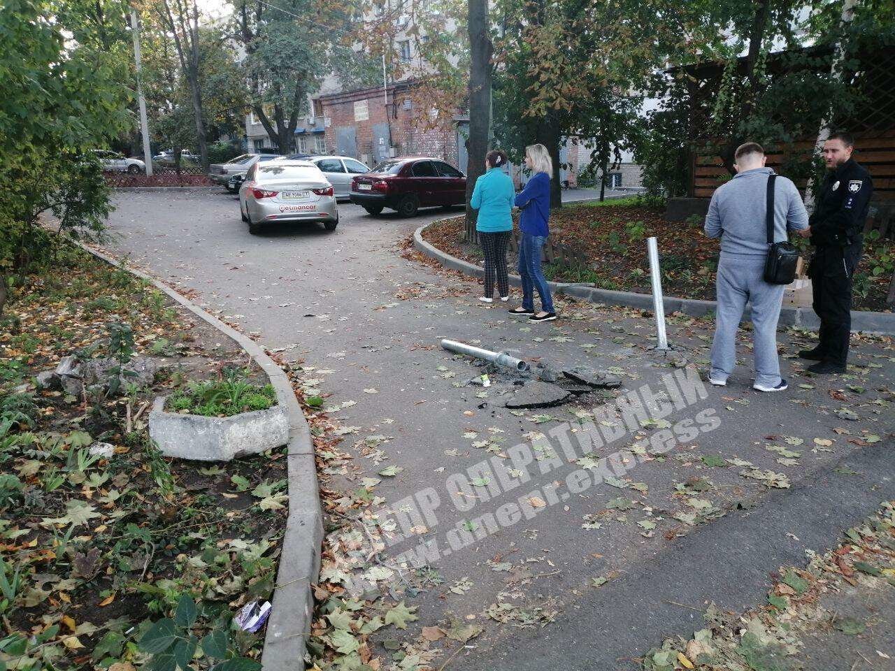 Сегодня, 18-го октября, в Днепре мужчина за рулем легкового автомобиля Hyundai Sonata снес заградительный столбик на Александра Поля. В связи с произошедшим пострадало как авто, так и обустройство двора.