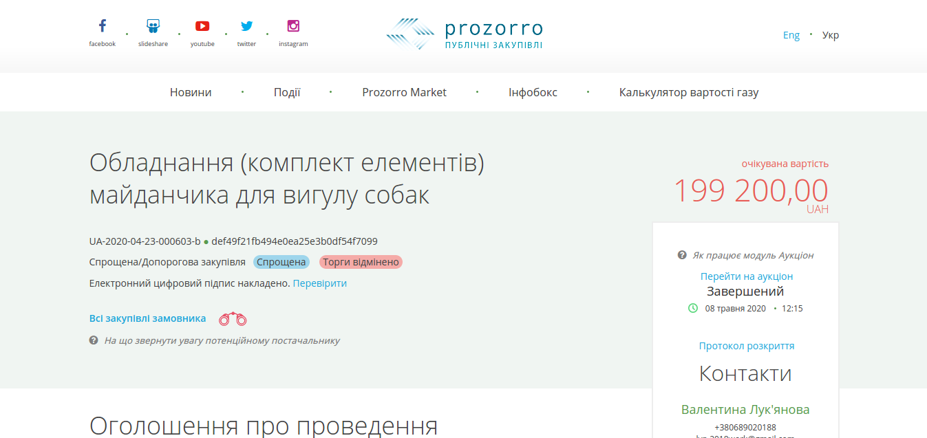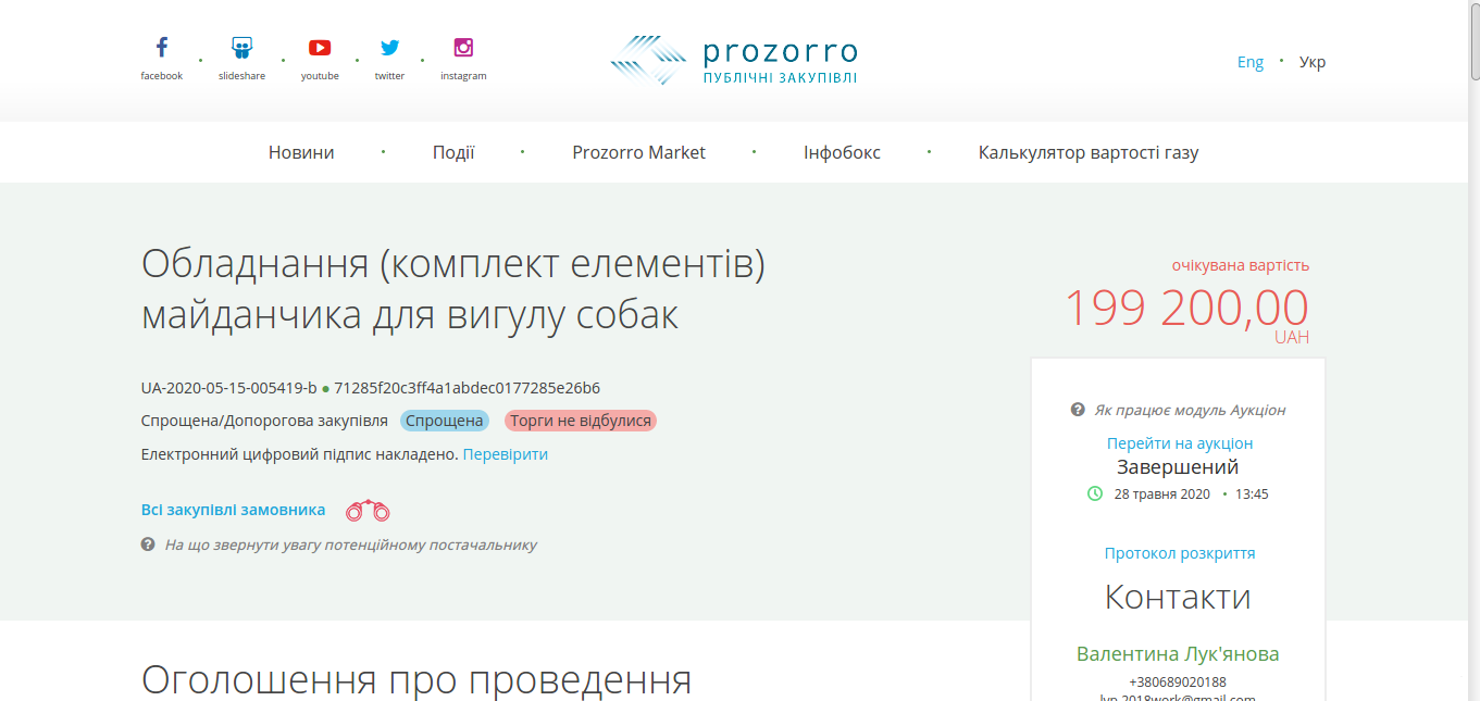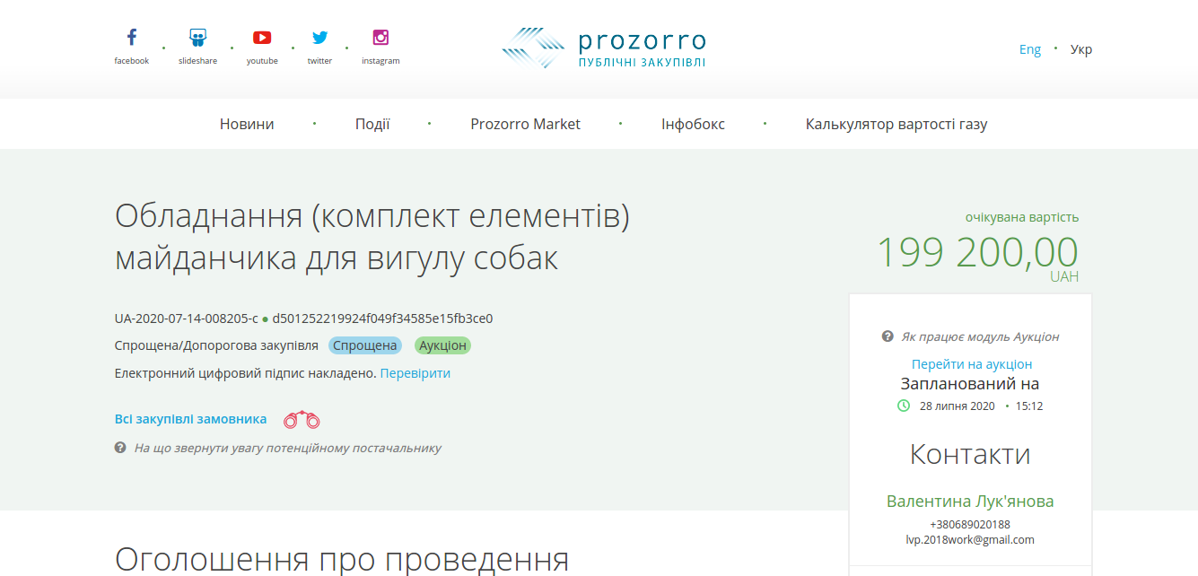 На сайте Prozorro идет аукцион на поставку оборудования площадки для собак на Космонавта Комарова. Ориентировочная стоимость должна составить 199 200 гривен.