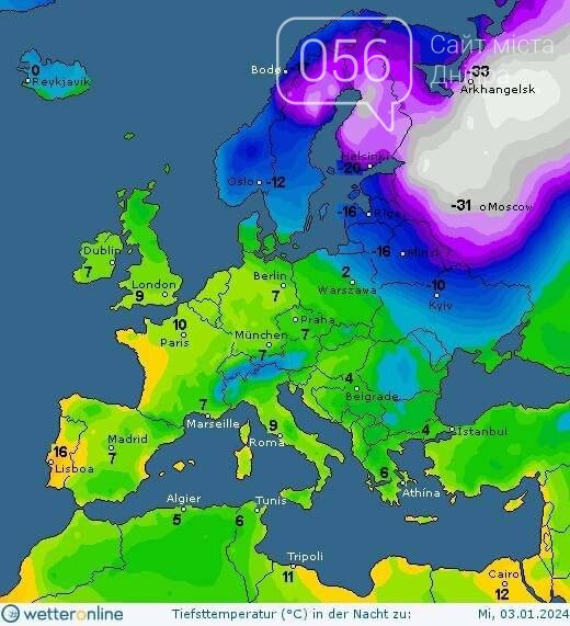 В Україні найбільші показники можуть десь досягати у нічні години -10-15 градусів, при проясненнях ще на 2-3 градуси нижче.