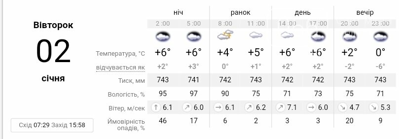 6 січня хмари вже з ранку вкриють небо, і похмура погода триматиметься у Дніпрі до кінця дня. Без опадів.