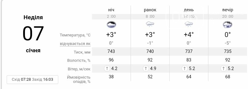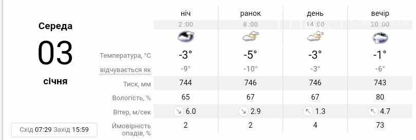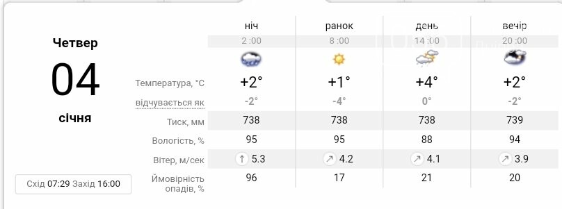 4 січня незважаючи на ясний ранок, вдень та ввечері у Дніпрі погода буде похмурою. Нічний сильний дощ закінчиться ще до світанку. Вдень він послабшає та розпочнеться знову, але ближче до вечора має припинитися.