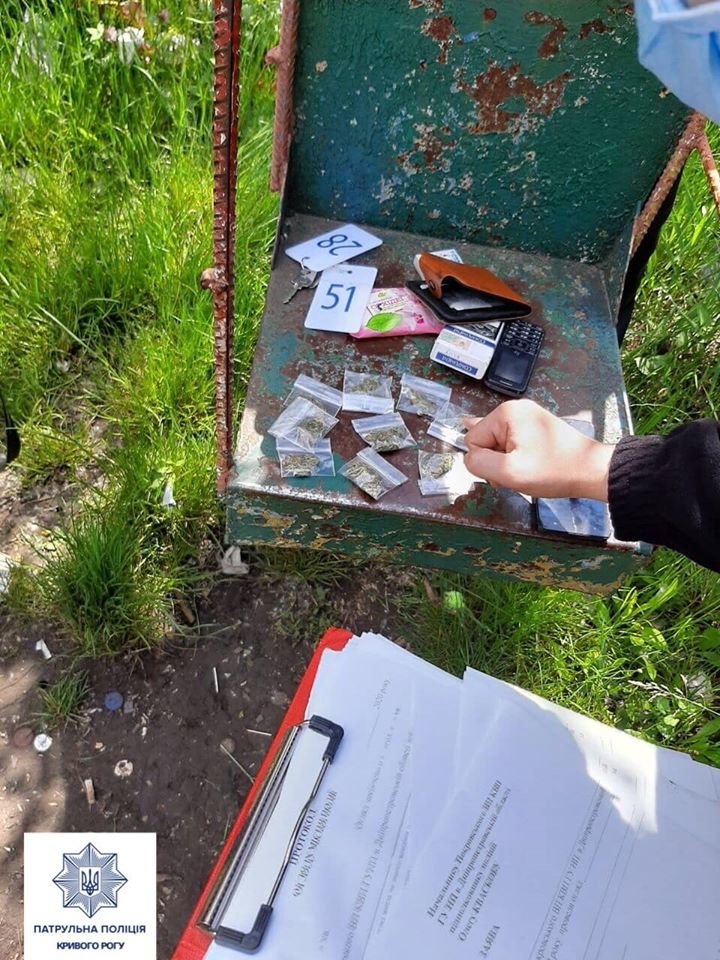 31-го мая, около в 13:00, на улице Ватутина в Кривом Роге полицейские заметили подозрительного местного жителя. Во время общения с правоохранителями молодой человек занервничал и изменил направление движения. Инспекторы его остановили.
