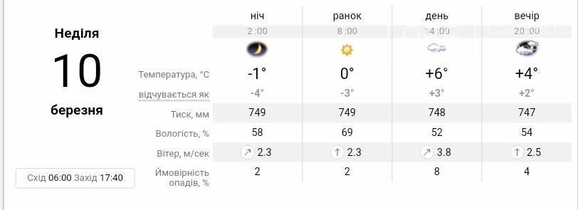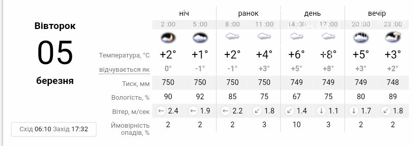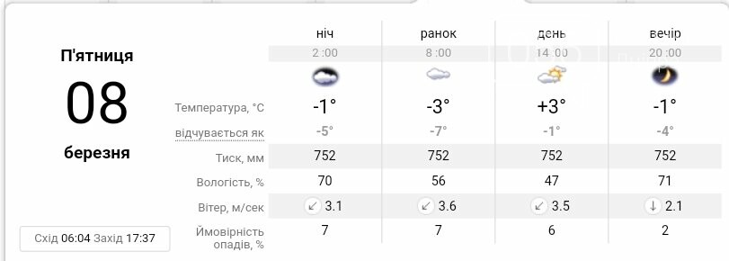 8 березня ранок та день у Дніпрі будуть хмарними, тільки вечір порадує нас ясним небом. Без опадів.