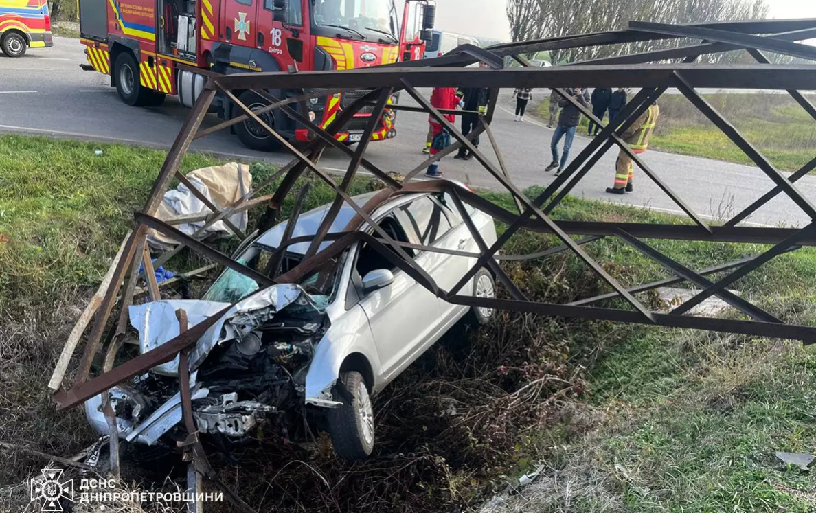 Під Дніпром автівка влетіла в опору ЛЕП.