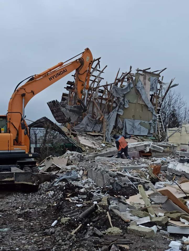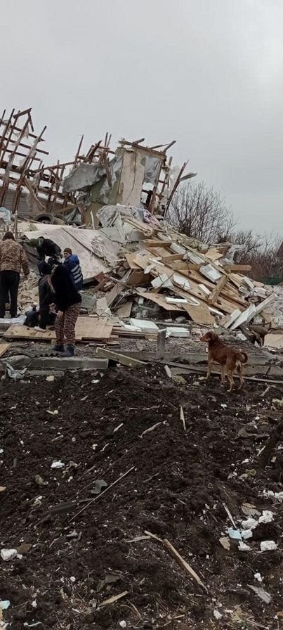 Будинок повністю зруйновано. В ньому знаходились шість котиків та шість собачок. Вчора з-під завалів дістали двох котів та двох собачок, яких вже поховали.